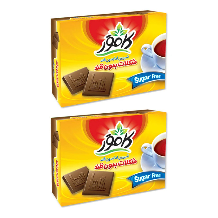 شکلات فانتزی بدون قند کامور بدون هیچگونه قند و شکر مصنوعی و شیرین شده با ایزومالت دارای تمامی نشان های استاندارد و سیب سلامت مناسب برای تمامی افراد و گروه های سنی مختلف