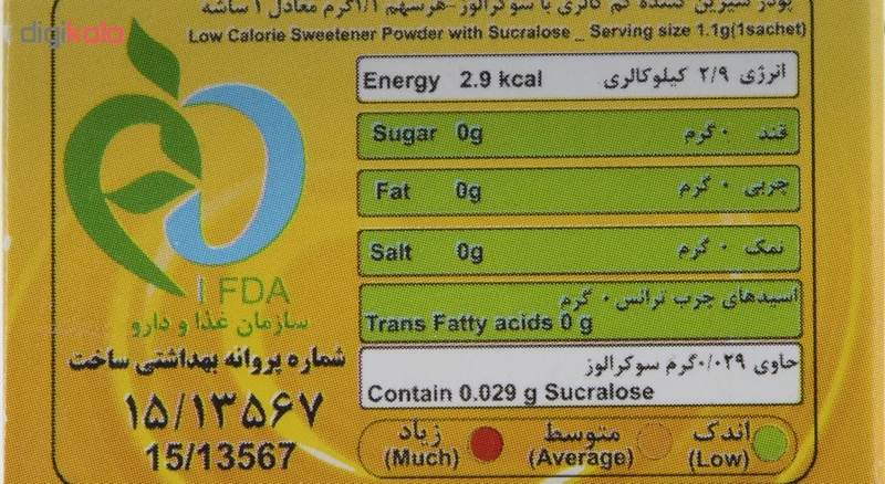 پودر شیرین کننده (( بدون قند )) کم کالری برند کامور بسته 50 عددی